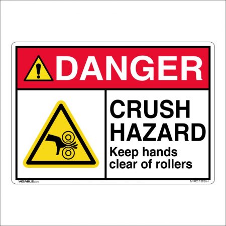 $5.00 – $14.00 Select optionsDANGER – Crush Hazard Keep Hands Clear Of Rollers w/ Symbol