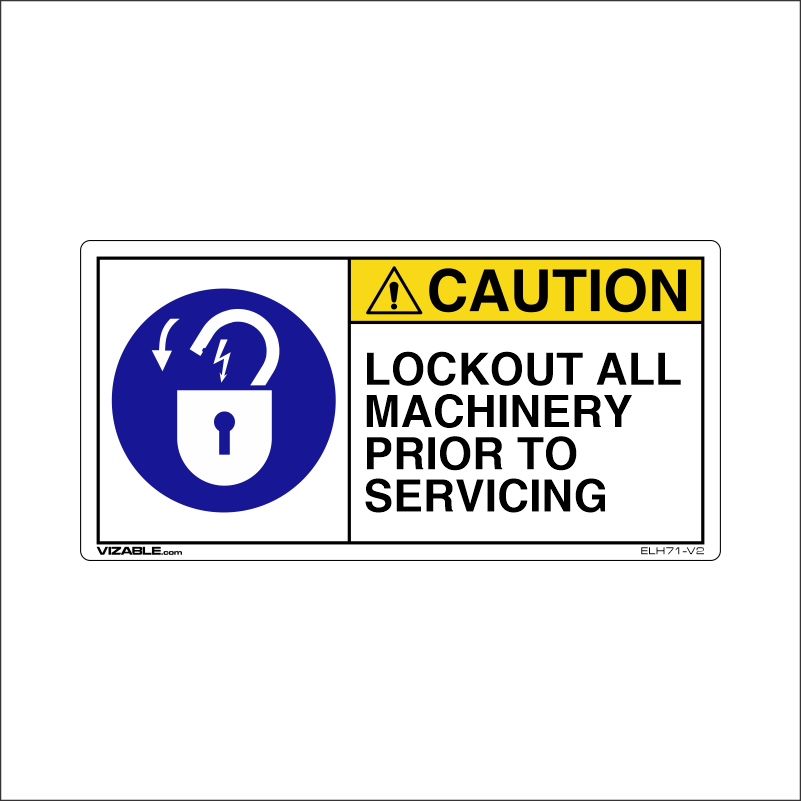 CAUTION – Lockout All Machinery Prior To Servicing Label