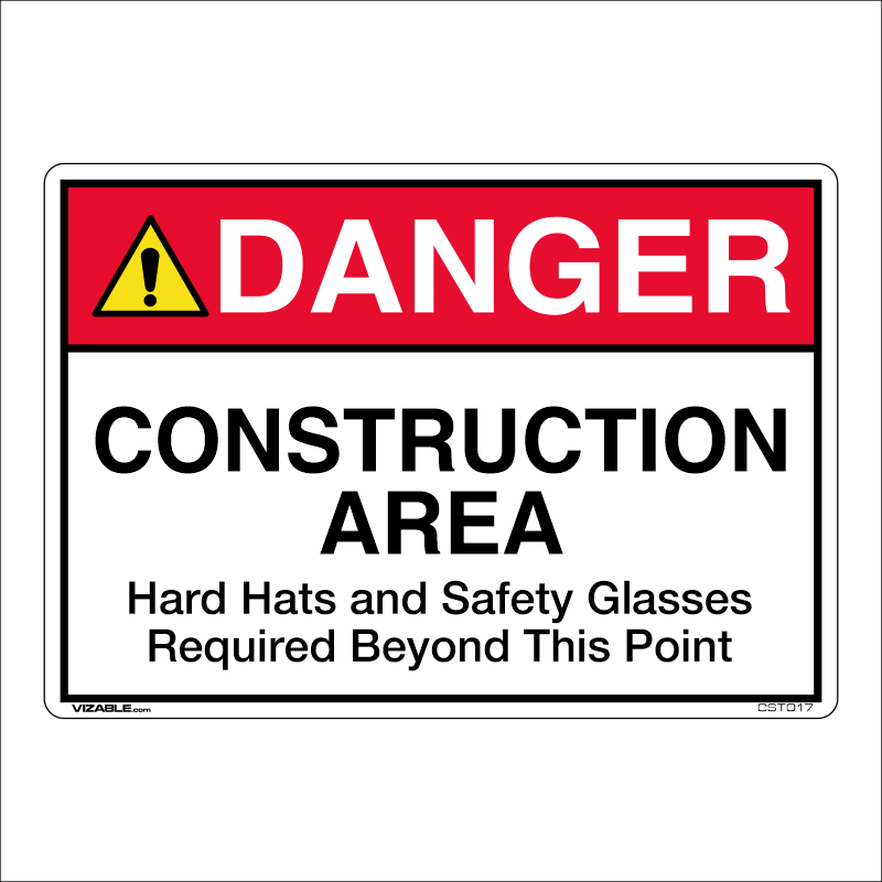 CONSTRUCTION SIGN – Danger – Construction Area Hard Hats Saftey Glasses Required