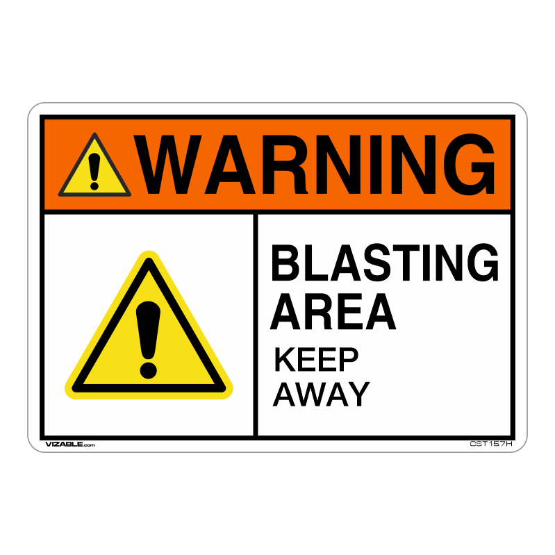 CONSTRUCTION SIGN – Warning – Blasting Area Keep Away w/Symbols