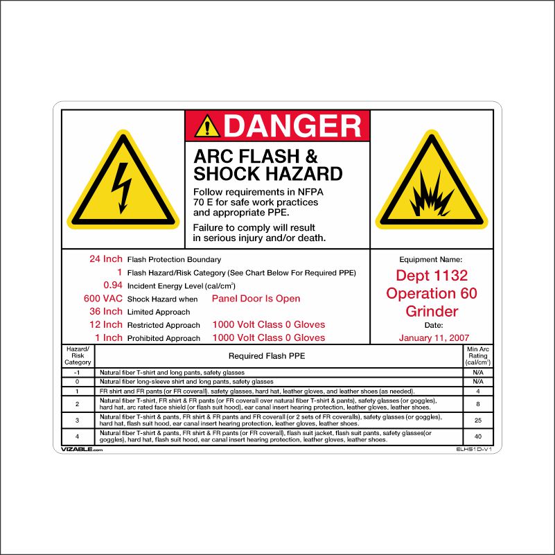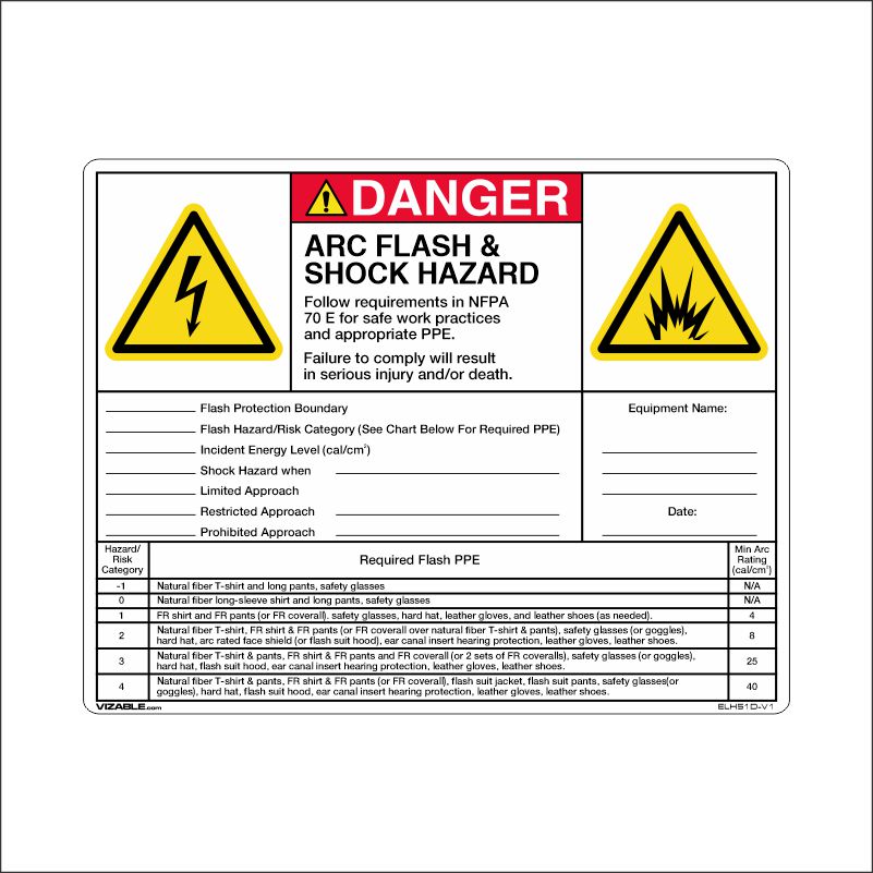 • Contact VIZABLE to create your custom Arc Flash Label