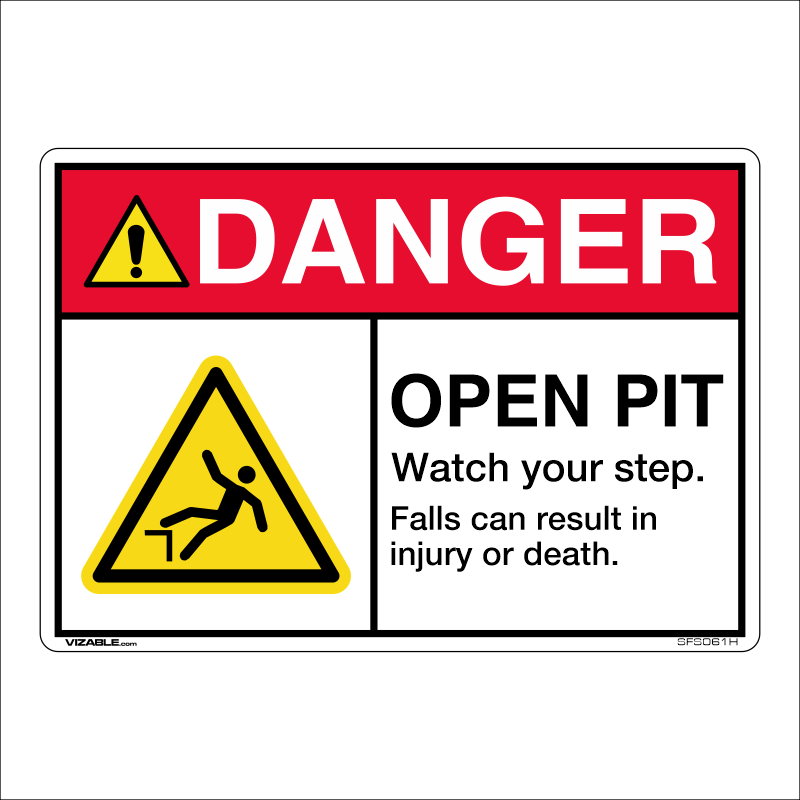 DANGER – Open Pit – Watch Your Step w/ Symbol