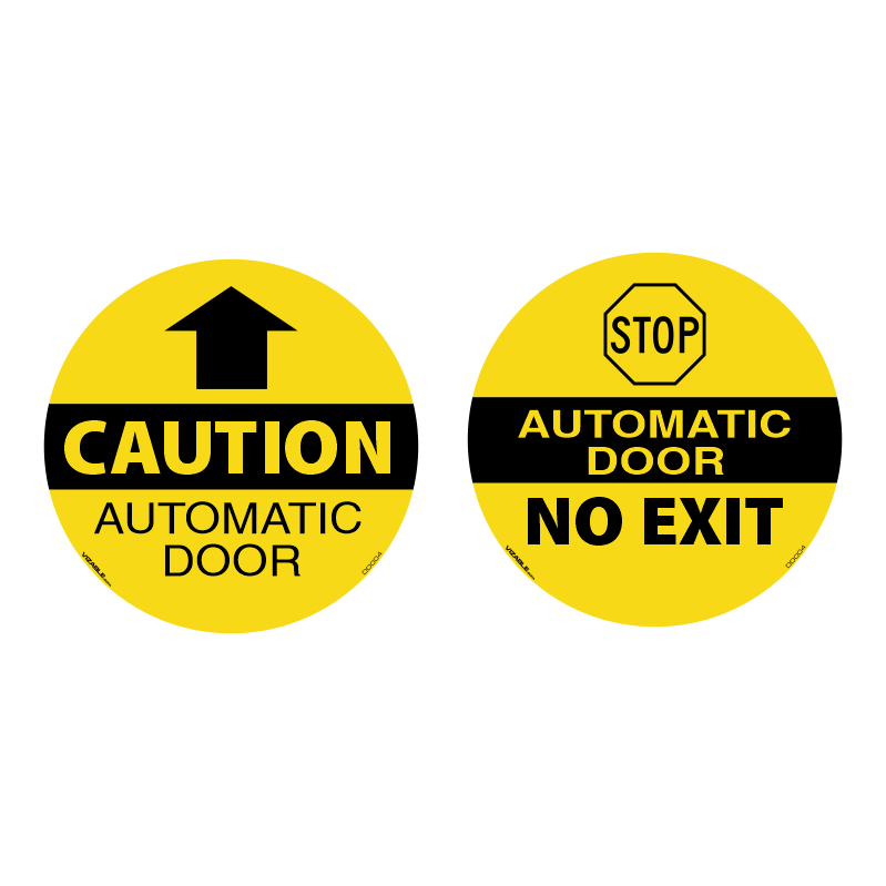 DOOR DECALS – Caution – Automatic Door + Stop – No Exit – Automatic Door – Double Sided – Yellow