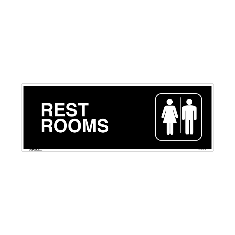 RESTROOM & DIRECTIONAL – Restrooms Men and Women w/Symbol – Horizontal – Black
