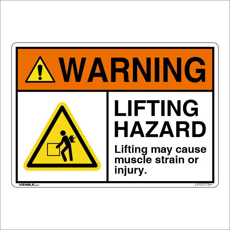 WARNING – Lifting Hazard – Lifting May Cause Muscle Strain Or Injury w/ Symbol
